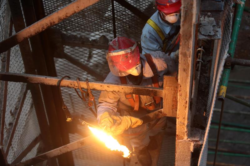 2月3日,2#石灰窯突發故障,對此,檢修車間領導帶領班組成員7人在做好安全以及病毒防御各項措施后,加班加點,其中黨員同志技術員朱孔慧和班長謝文東沖鋒在前,從早上八點一直工作到了夜里十點,終于將故障消除,順利實現了石灰窯運行。