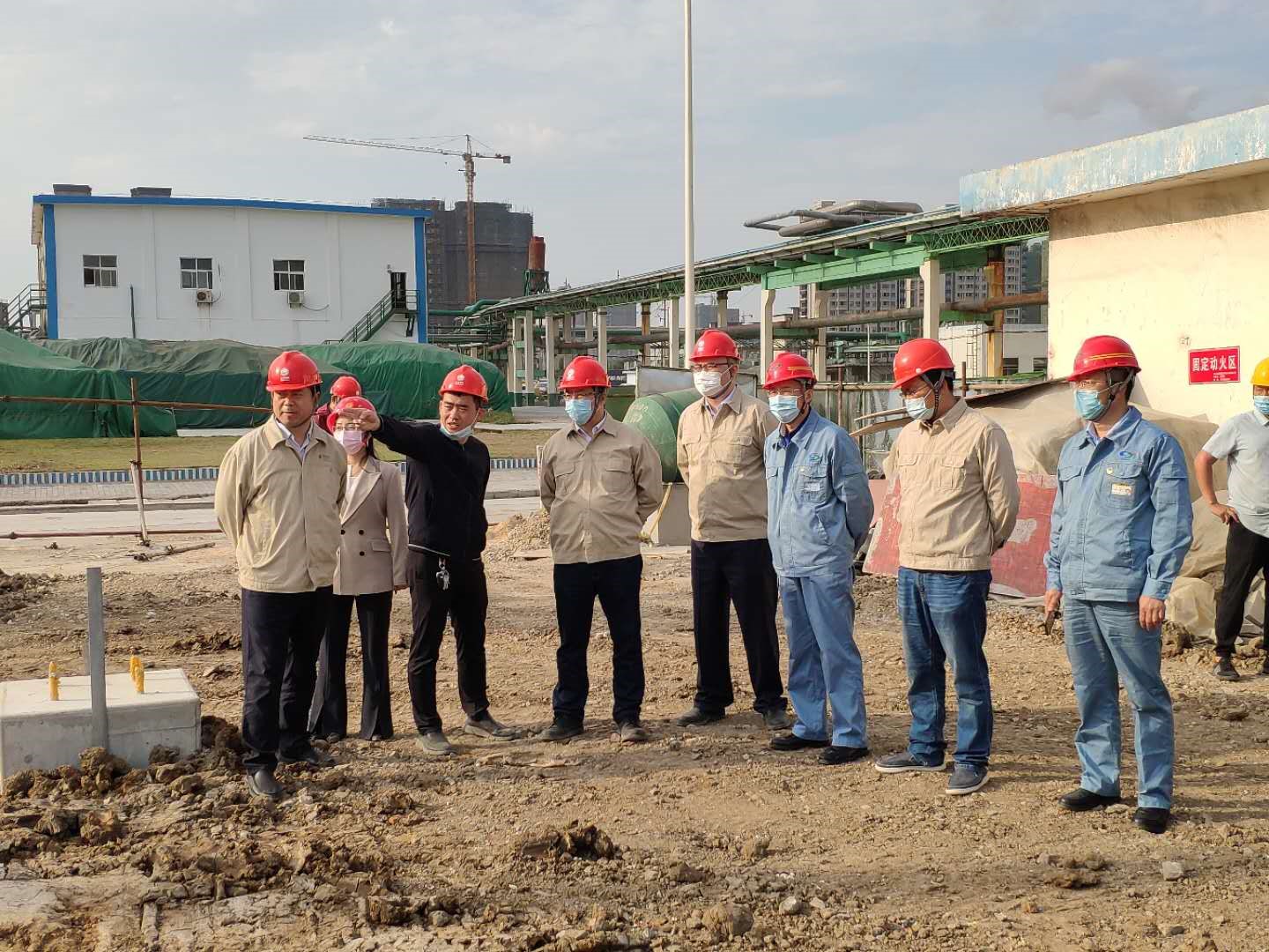 程真何一行人員在堿業公司董事長張衛民的帶領下實地考察了外電網系統供電增容改造施工狀況,并就施工質量和進度提出了意見和建議。